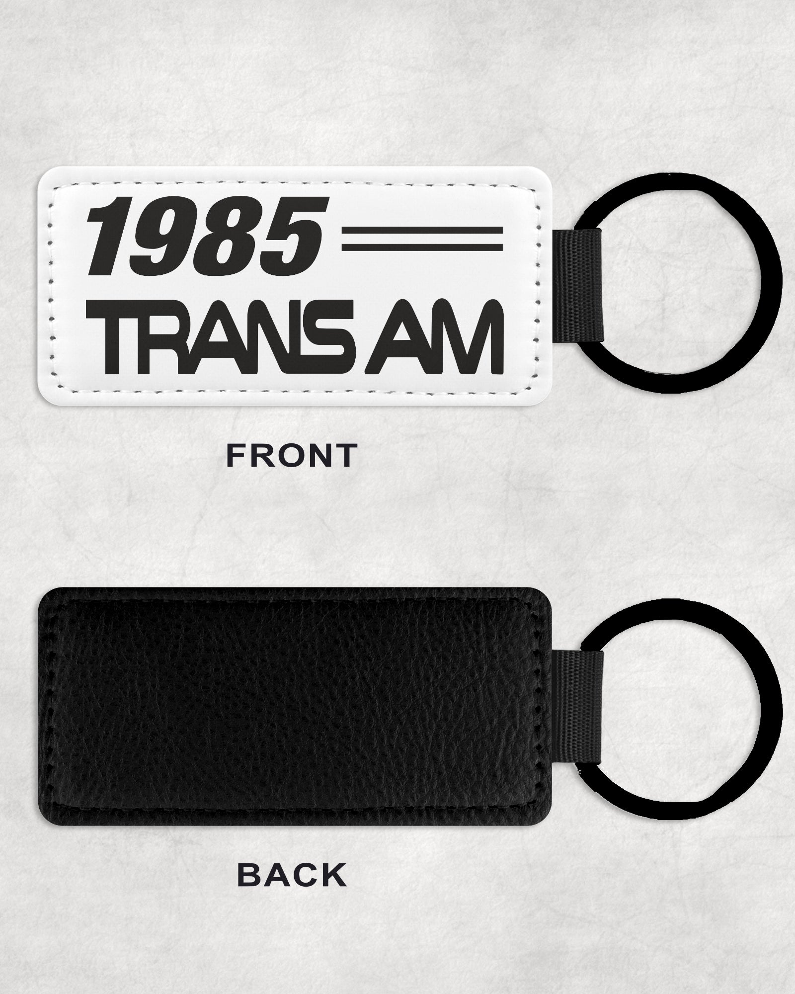 Experience the iconic style and power of the 85 Pontiac Trans Am with this sleek leather car keychain. Perfect for any car enthusiast, this keychain features the classic Trans Am logo and design, making it a must-have accessory for your keys. Show off your love for this legendary car with this high-quality keychain!